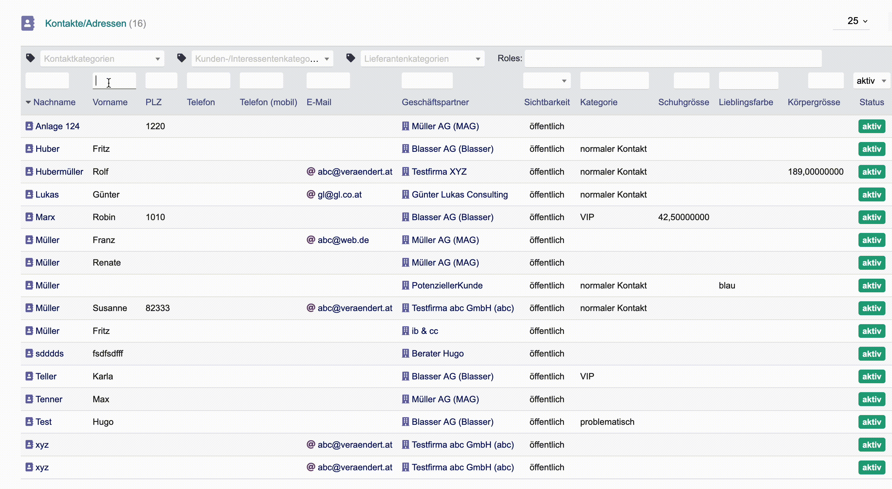 Dieses Modul revolutioniert die Listenanzeige in Dolibarr. Wenn Sie einen Text in eines der Suchfelder eingeben oder eine Dropdown-Box auswählen, wird die Liste sofort mit diesen Suchkriterien aktualisiert. Es ist nicht mehr nötig, auf das Lupensymbol zu klicken.